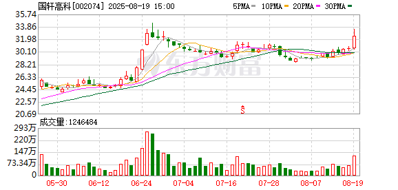 证券时报·数据宝统计显示,国轩高科今日收盘价为32.43元,上涨5.81%,日换手率为7.22%,成交额为39.97亿元,全天主力资金净流入3.41亿元,近5日该股累计上涨11.02%,近5日资金合计净流入3.89亿元。